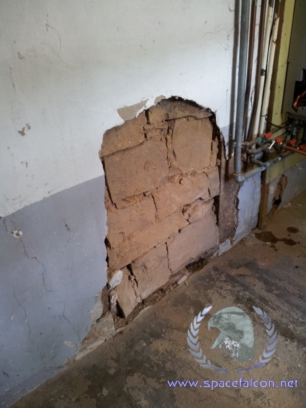 Und wie ich so den Besen schwinge und an den mir zwar bekannten losen Lehmputz komme passierte das Malheur, der Putz fiel in einem schönen großen Stuck von der Wand. 👿